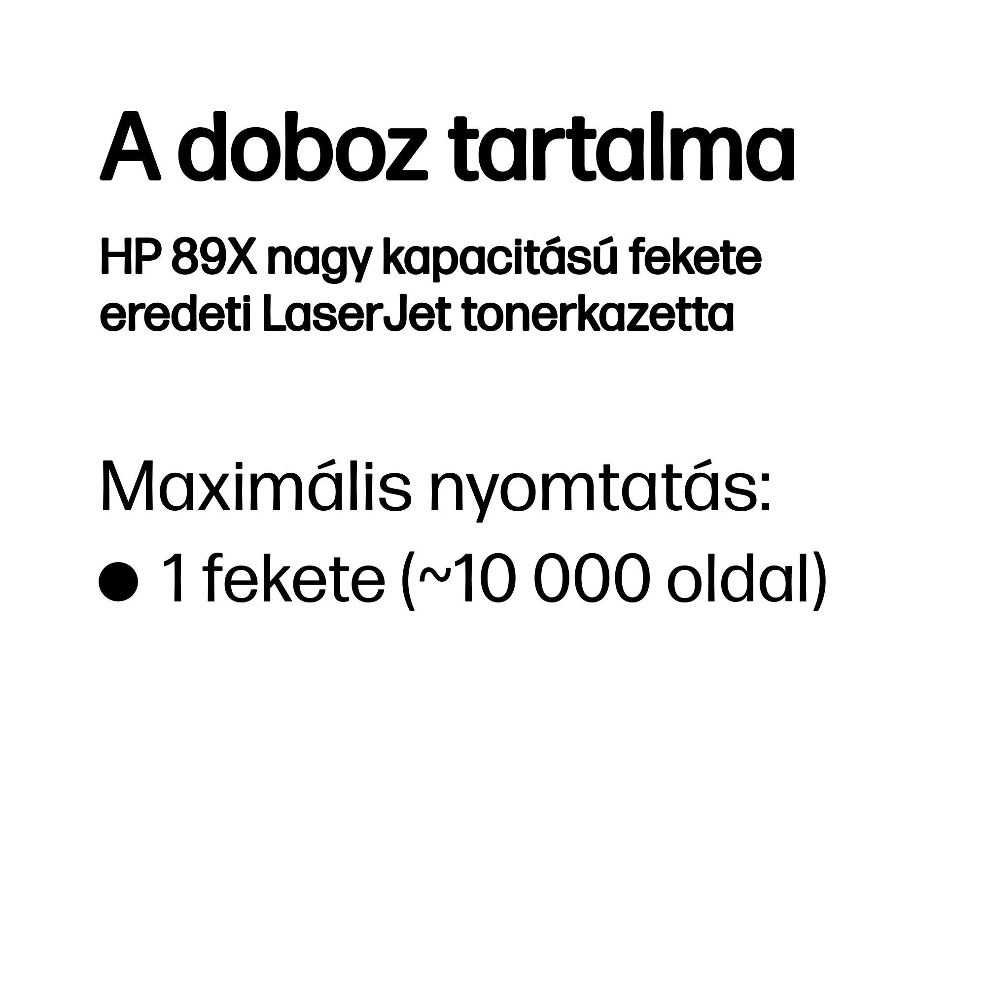 | Fekete toner oldal kapacitása | 10000 oldalak |